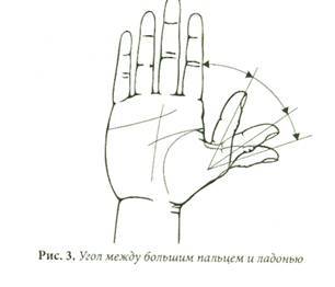 Как определить угол между большим пальцем и ладонью