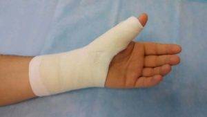 - При травме локтевой кости и пальцев повязку фиксируют под углом в положении 90 градусов с одновременным обездвиживанием пальцев. В отличие от переломов, травмы суставов не требуют полной иммобилизации, для этого достаточно обездвижить только сустав.