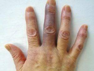 Отдельно стоит отметить болезнь Рейно — патологическое состояние, при котором палец опухает и приобретает синюшный оттенок. Данная патология требует качественного обследования и лечения пациента, в противном случае существуют большие риски ампутации фаланги.